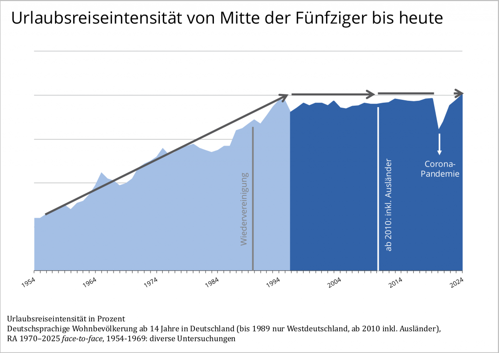 Die Trendstudie stützt sich auf die umfassende historische Datenbasis der Reiseanalyse (RA). Dieser einmalige Langzeitdatenbestand ermöglicht es, die Entwicklung des Reisemarkts nicht nur rückblickend zu verstehen, sondern die Zukunft der Urlaubsreisen in Deutschland auf einer außergewöhnlich stabilen Grundlage zu betrachten.